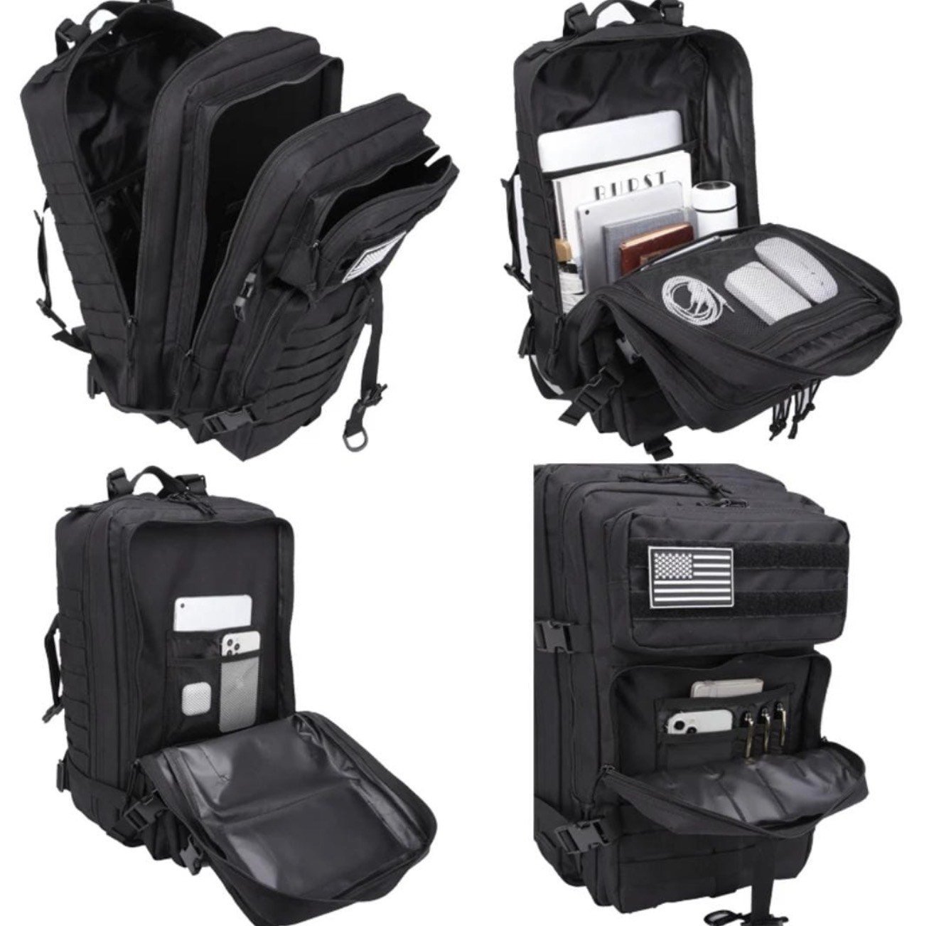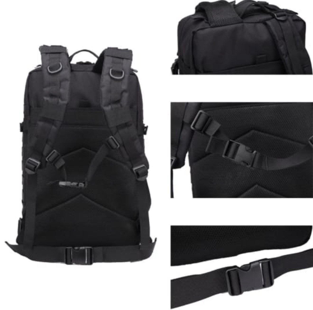 - Material impermeable: el material Molle impermeable de alta densidad te protege contra la lluvia y el sol.