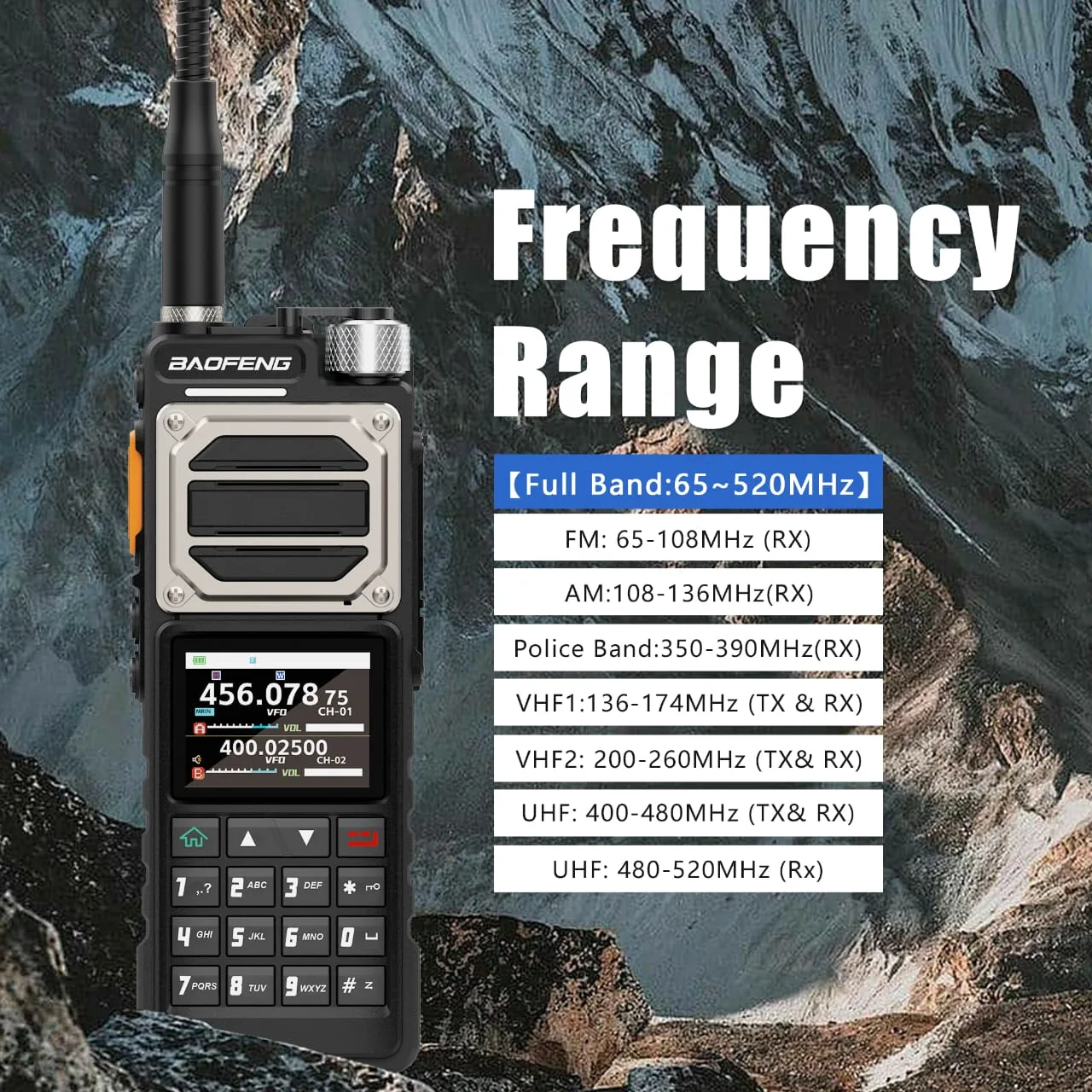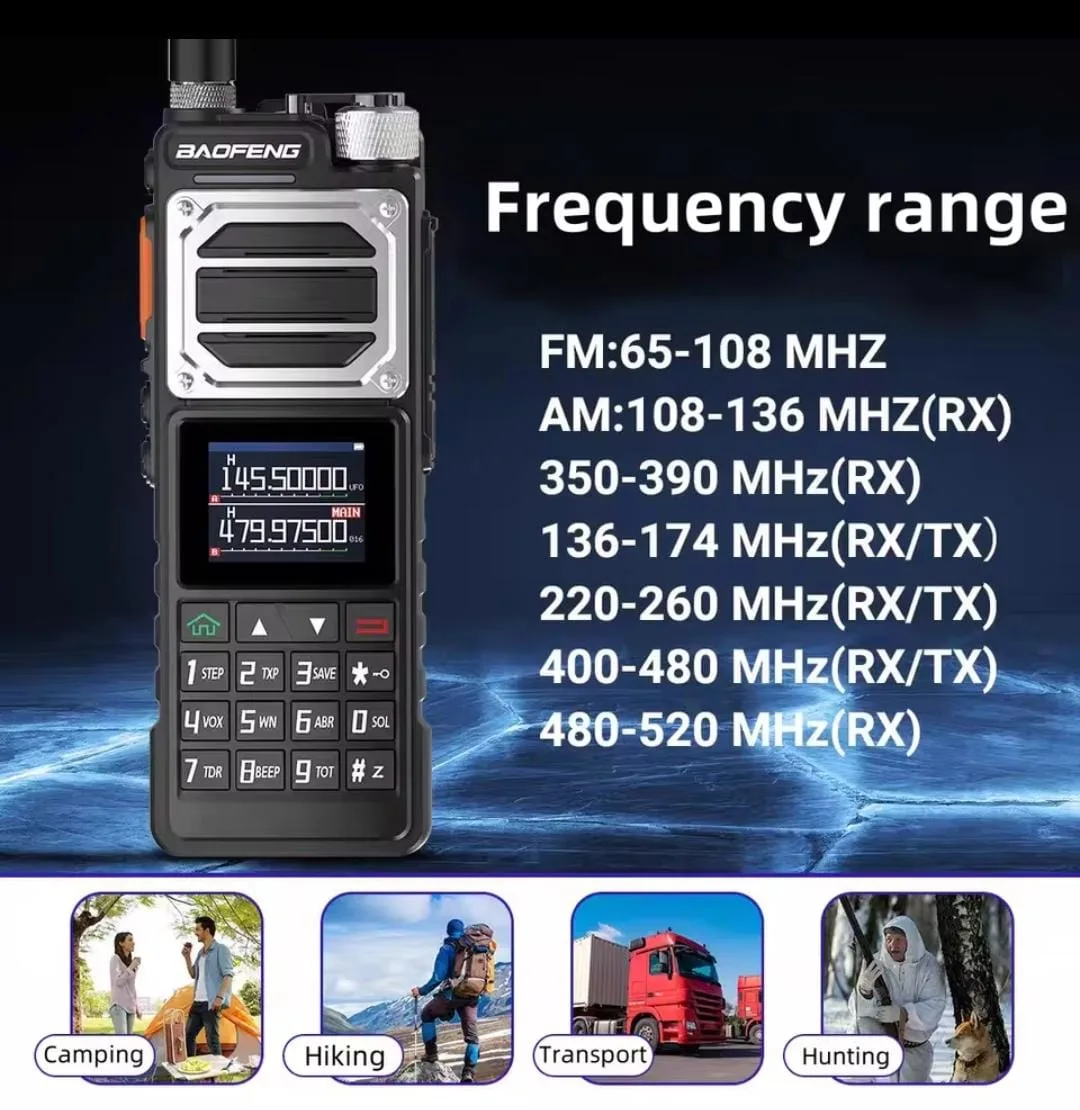 - Multi Banda: Permite recibir y transmitir en diferentes frecuencias, incluyendo FM, AM, VHF y UHF, para una mayor flexibilidad en la comunicación.