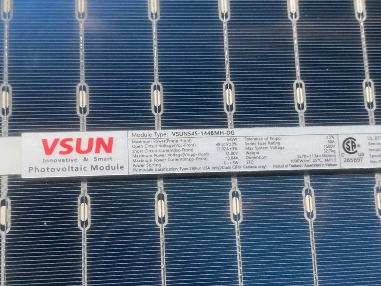 El panel solar VSUN 545W de 144 celdas bifaciales ofrece una solución eficiente y duradera para satisfacer tus necesidades de energía renovable. Con su tecnología avanzada y diseño robusto, este panel es capaz de captar la energía solar de manera efectiva, lo que se traduce en una mayor producción de energía y una reducción de costos a largo plazo.